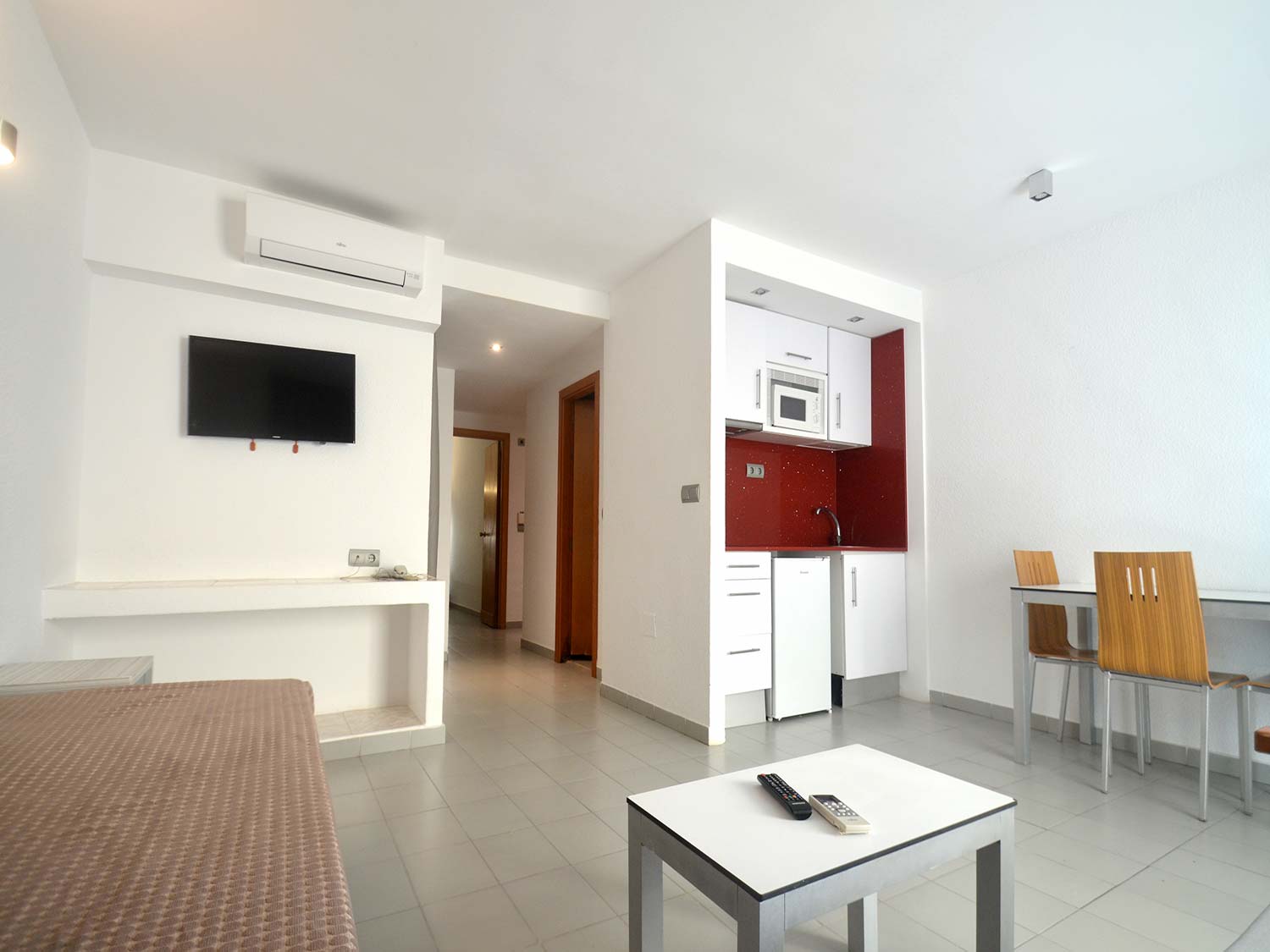 This holiday apartment accommodates up to 3 adults and it's fully equipped with a kitchenette, fridge, microwave, TV, and Wi-Fi. The apartment also includes a private balcony.