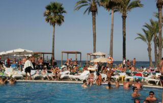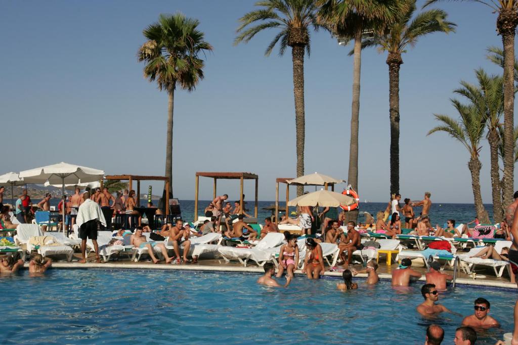 Located directly on the beachfront of Playa d’en Bossa, this adults-only apartment complex is the perfect choice for party-loving travelers looking to immerse themselves in Ibiza’s legendary nightlife.