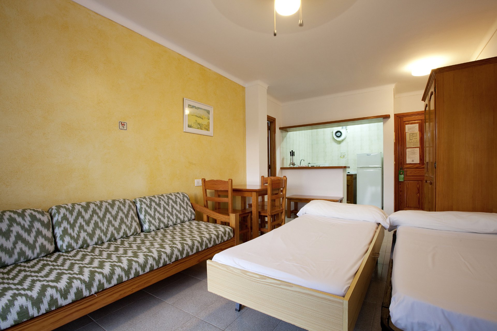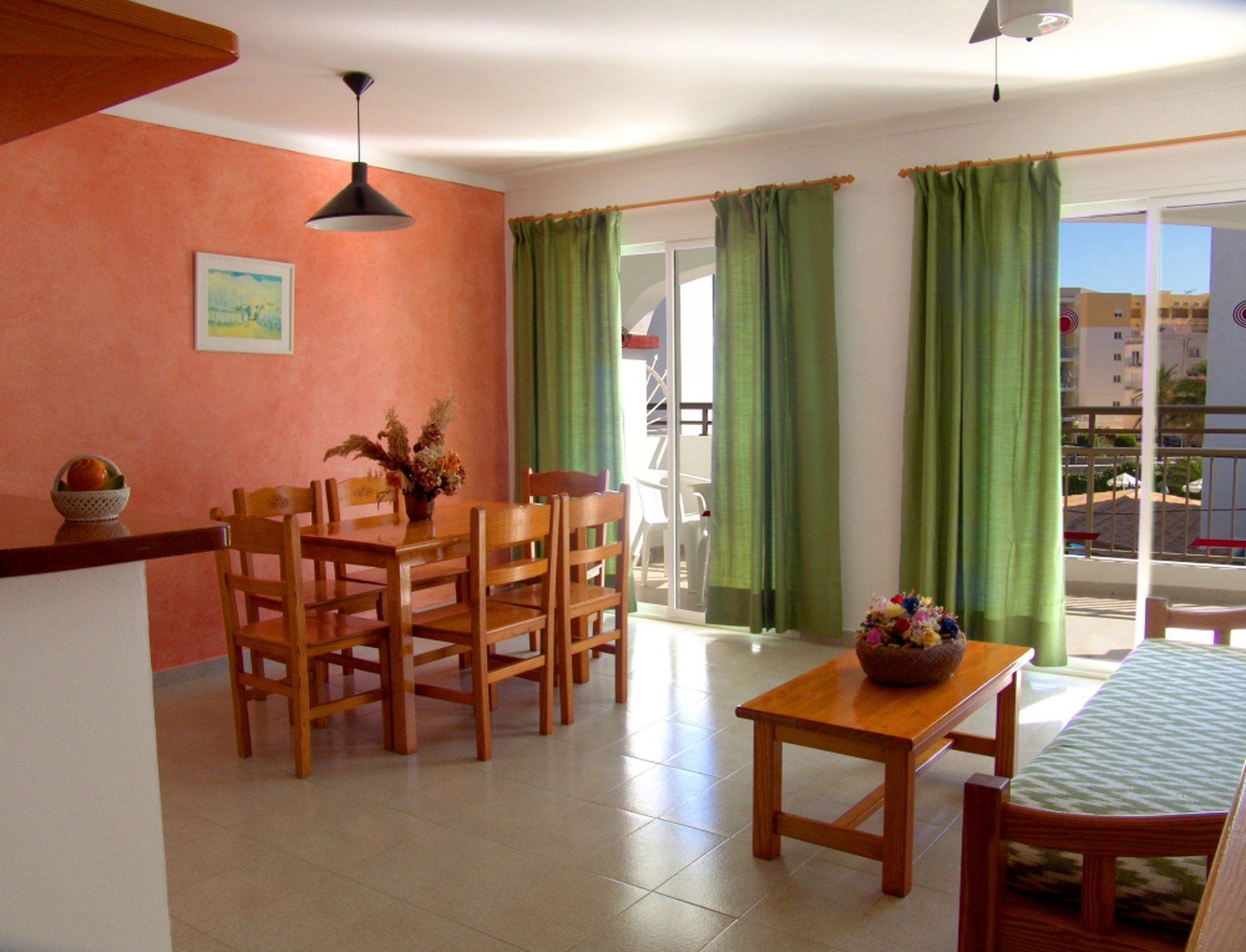 Located directly on the beachfront of Es Canar, this apartment complex offers a prime location with stunning sea views (some of the apartments and studios) and easy access to local attractions. Guests can enjoy the convenience of nearby bus and taxi services, as well as boat trips to destinations like Santa Eulalia del Río, Cala Pada, and Formentera.